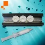 Bei thermischen Fetten handelt es sich normalerweise um Silikon, welches mit wärmeleitenden Füllern bereichert sind. Eine Aushärtung ist in der Regel nicht nötig und sie können fließen und sich den Schnittstellen hervorragend anpassen. Die thermischen Schnittstellen sind problemlos nachbearbeitbar. Es muss allerdings sichergestellt werden, dass vor der Installation des Kühlkörpers genügend Paste oder Fett aufgetragen wurde. Zu wenig Fett kann Lücken zwischen Kühlkörper und Prozessor zur Folge haben. Aber auch zu viel Fett kann auf der anderen Seite ebenfalls kontraproduktiv sein, da dies zu Luftspalten und Leckagen außerhalb der Schnittstelle führen kann. Zu beachten gilt auch, dass sich bei längerem Betrieb und generell im Laufe der Zeit, einige Fette verschlechtern oder austrocknen können. Dies wirkt sich natürlich negativ auf die Wärmeübertragungsleistung aus. Fette als Grenzflächenmaterialien (TIM) sind dennoch die erste Wahl in Anwendungen mit Hochleistungsprozessoren – trotz der oben genannten Nachteile. Dies liegt vor allem daran, dass die Wärmeleitfähigkeit von thermischen Fettenliegt in der Größenordnung von 10 W / mK angesiedelt ist, was anderen TIMs klar überlegen ist.